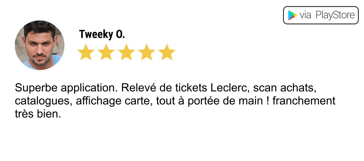 Vous permet de recevoir vos tickets de caisse, et suivre votre solde de tickets Leclerc.
